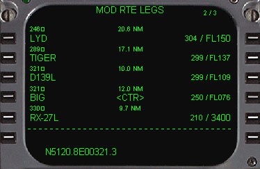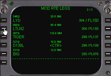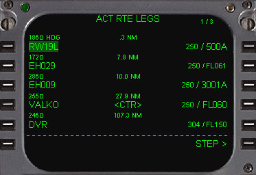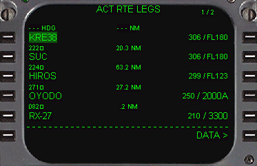 このページの目的と使用 ・ルート上の各ウェイポイントを、RTEページで入力したものを基に自動的にラテラルとバーチカルのフライトプランの詳細を表示します。 |