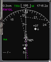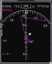 | ・ ウェイポイントを追加すると、その状態をアクティブにする必要があります。 それまでは、フライトプランコースは白の破線で表示されています。 ・ EXECキーが点灯しアクティブにするように要求してきますので、キーを押しますと実行されてフライトプランコースはマゼンタの実線に変わります。 |