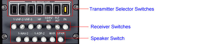 (注)このシミュレーションの目的のためにすべての音声の受信がコックピットスピーカーを通して聞こえるというように装っています。