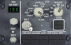 上と同じ位置ですが、EADIの明るさの調整です。 画面左下のBRTノブです。