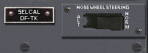 SELCALplate(左)とNOSE WHEEL STEERINGスイッチ(右)