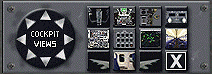 これは各アイコンをクリックしてVIEWの変更をするわけですが、左のCOCKPIT VIEWS および右のアイコンの中で、元のメインパネルの画面に戻すには×印の無いVIEWはウインドウの左上に隠れたクリックポイントがあります。そこをクリックして元のメインパネルに戻ります。パネルの表示はキーボードでもできます。(Shift+1〜9) 右のアイコンの中の右下の×をクリックしますと、下の画面に変わります。
