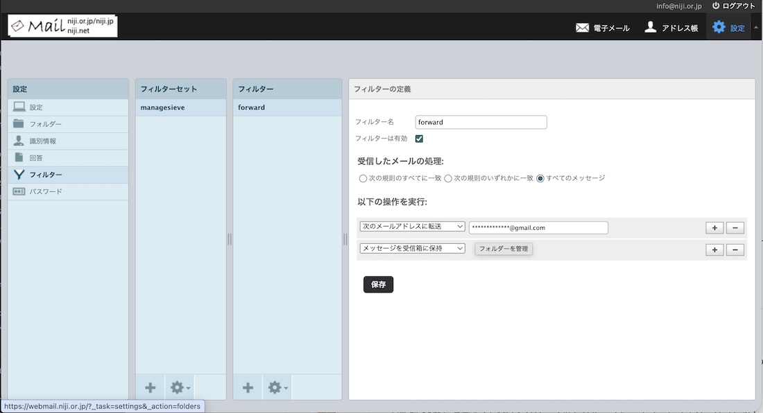 ※転送設定により、虹ネット宛のメールが届いた際に自動で Gmail に転送されます。